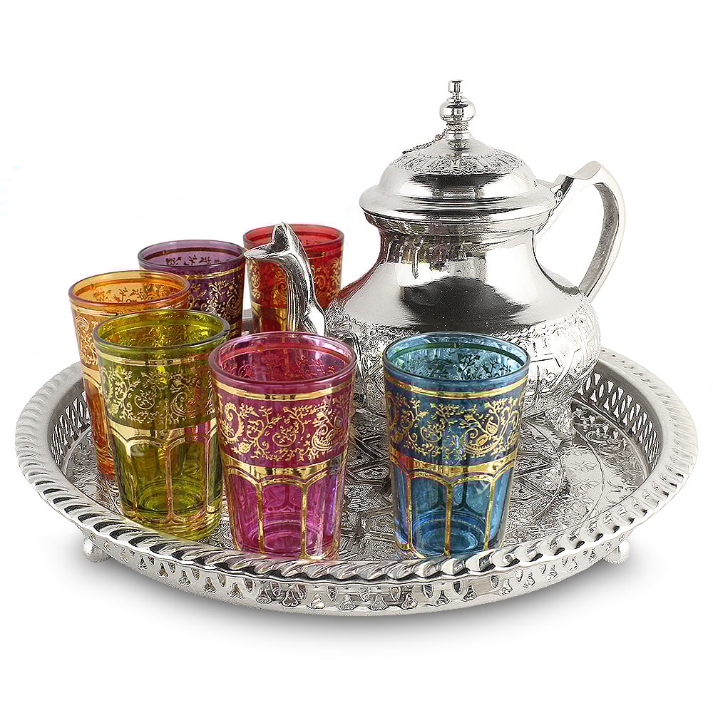 Les verres à thé marocains sont les dépositaires de la tradition et du savoir-faire des artisans verriers locaux, ainsi que du sens du détail et de l’ornementation au Maroc. Deux types de verre sont particulièrement représentatifs du style marocain de l’art de la table. Le premier modèle est celui des verres Beldi, faits main et soufflés à la bouche à Marrakech. Facilement reconnaissables par leur design possédant un relief dans la partie supérieure, ils sont exclusivement conçus à partir du verre recyclé de la région de fabrication. Ils existent dans diverses couleurs, et sont à coup sûr utilisés dans une cuisine marocaine typique. Les seconds styles de verres à thé sont les verres colorés ornés de motifs. Fréquemment rassemblé en un set multicolore, à plusieurs dans un salon, il est ainsi toujours possible de savoir à qui appartient un verre ! Utilisés comme verre à thé, ils peuvent servir aussi pour le café ou même comme verre à eau. L’ornement fait main rappelle les arabesques des tatouages henné. Les motifs, cuivre ou or de certains verres, apportent une touche de sophistication tout en les gardant assez transparents pour qu’il soit possible de voir le niveau de thé versé. Pratiques, polyvalents