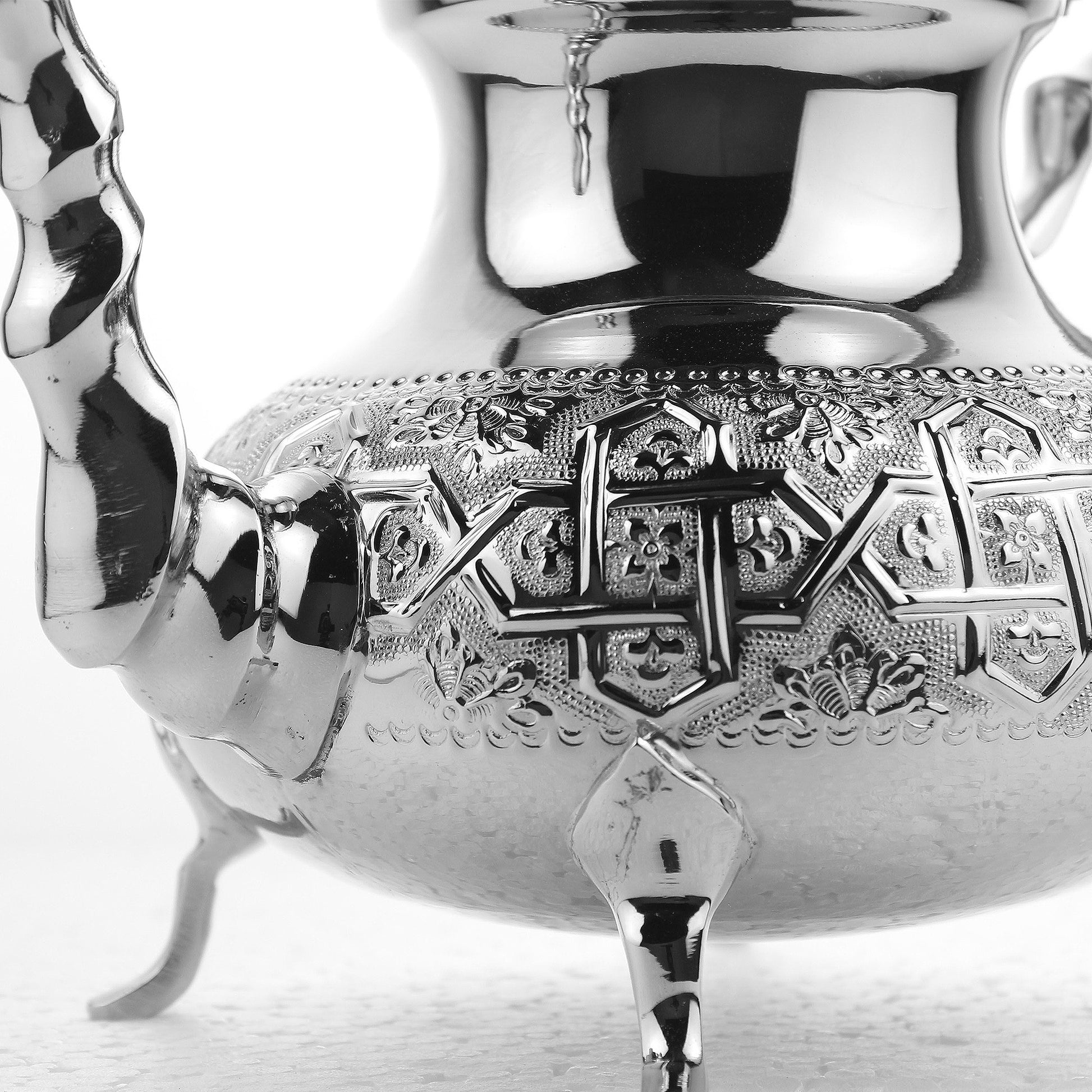 Avec sa grande anse elle est facile à prendre en main et son long bec verseur permet de verser et d'aérer le thé et la menthe d'une manière optimale lors de vos repas de famille ou lorsque vous recevez du monde. Enfin, les motifs gravés sont martelés à la main pour un rendu tout simplement exceptionnel.